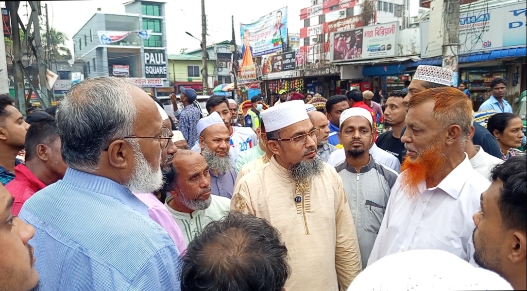 সাচনা বাজারে জনতার ঢল, জামায়াত নেতা তোফায়েল খানের গণসংযোগ