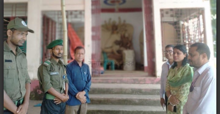 সিলেট রেঞ্জ ডিআইজির দোয়ারাবাজারে পূজা মণ্ডপ পরিদর্শন